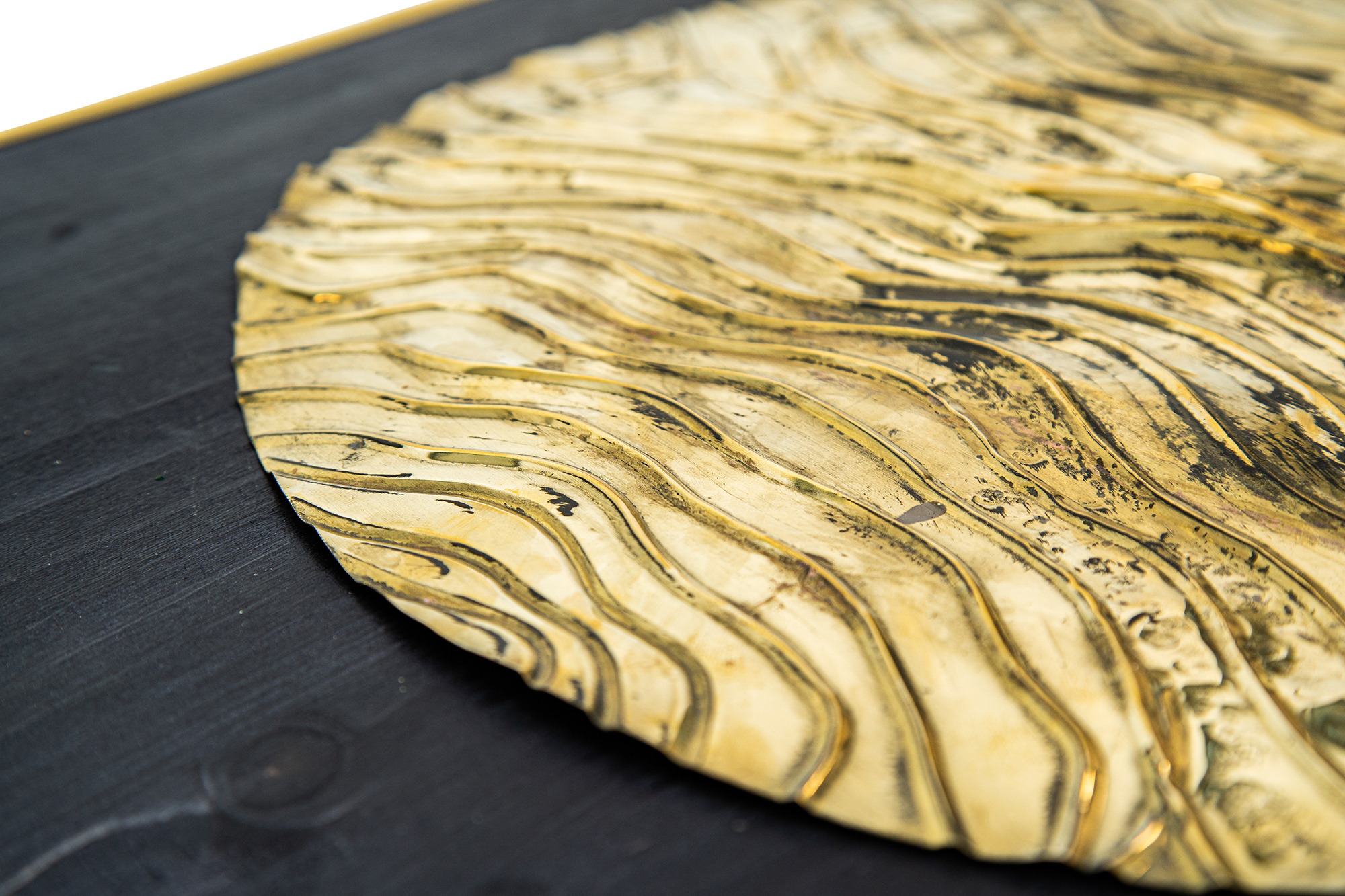 Sbalzo a mano su ottone, cornici in alluminio oro